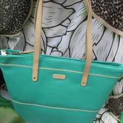 Sac à main, style shopping, vert et bleu en transparence.