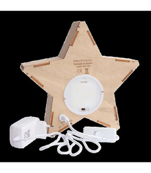 Lampe en forme d'étoile, faite à la main, en bois de forêt durable.