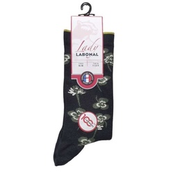 CHAUSSETTES FEMMES COTON FLEURS NOIR 53190 - LABONAL -