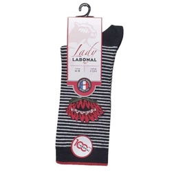 CHAUSSETTES FEMMES COTON RAYE FLEUR 53119 NOIR - LABONAL -