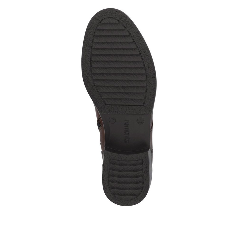 Cette bottine REMONTE en cuir marron associe confort et praticité.