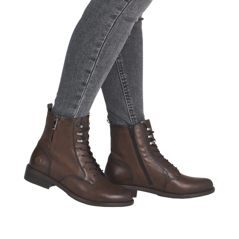Bottine marron à lacet et zip – REMONTE (largeur F 1/2)