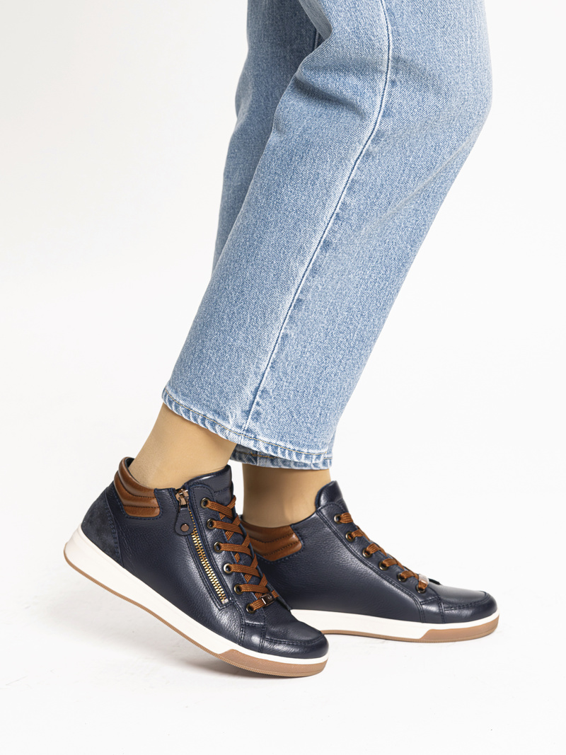 SNEAKERS LACET ZIP MONTANT LARGEUR G MARINE ARA 12244 - BOTTINE LACET SPORT - LUDIVINE CHAUSSEUR- BRETEUIL - Voir en grand