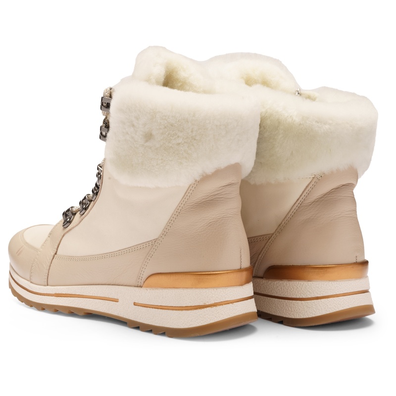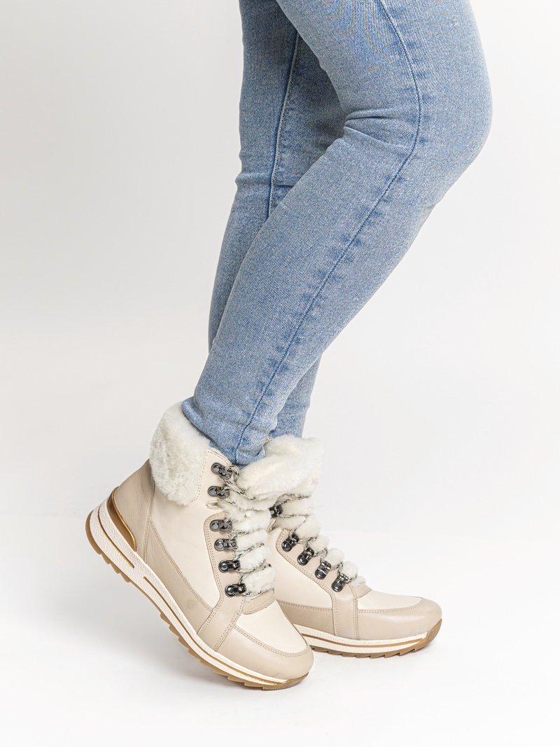 Découvrez cette bottine montante à lacet largeur H, idéale pour les pieds larges ou sensibles. Conçue en cuir beige, elle offre un confort exceptionnel et un style élégant, parfait pour affronter l’hiver avec douceur.