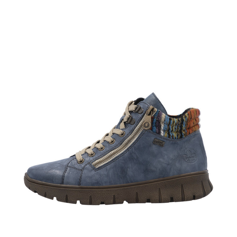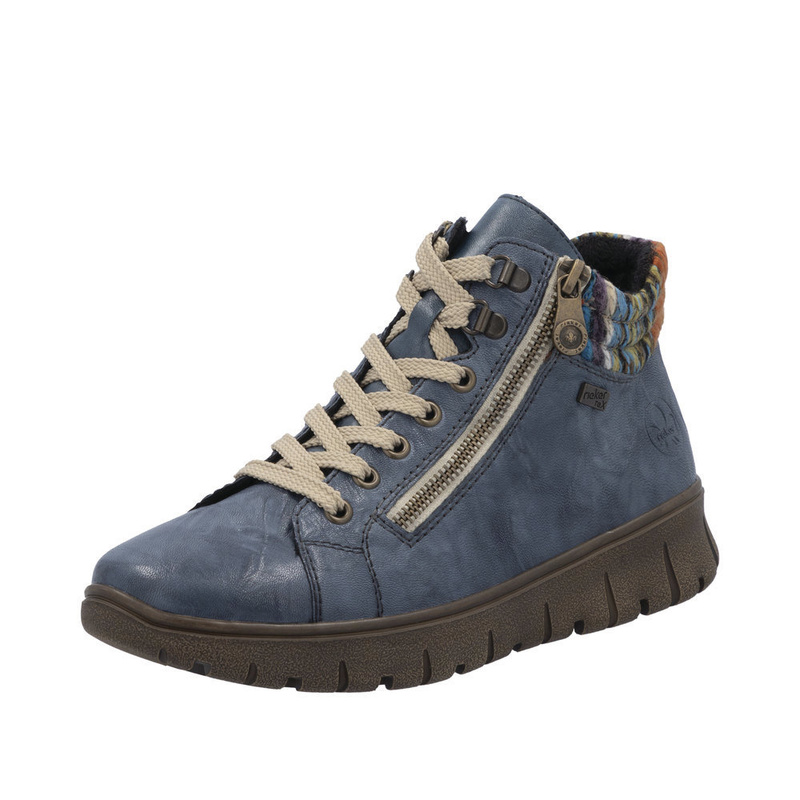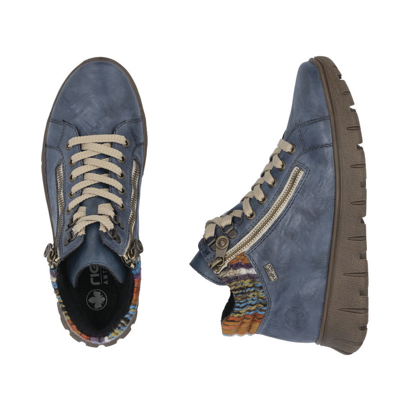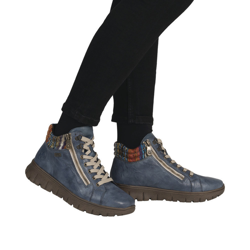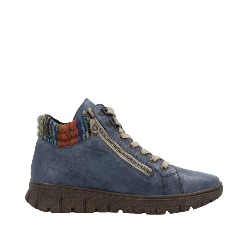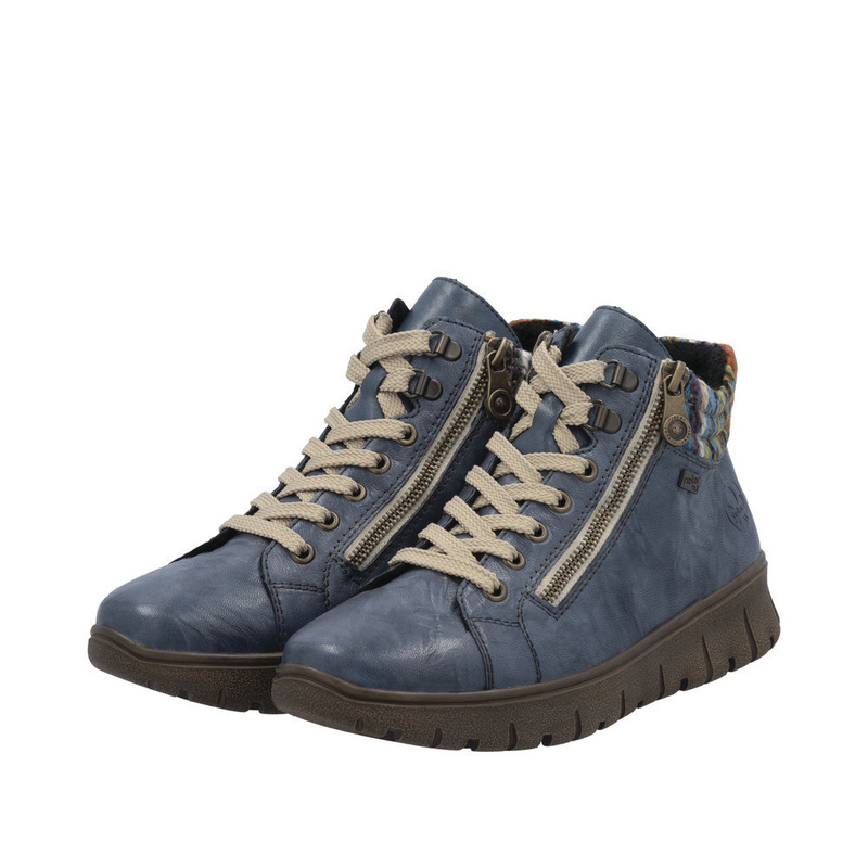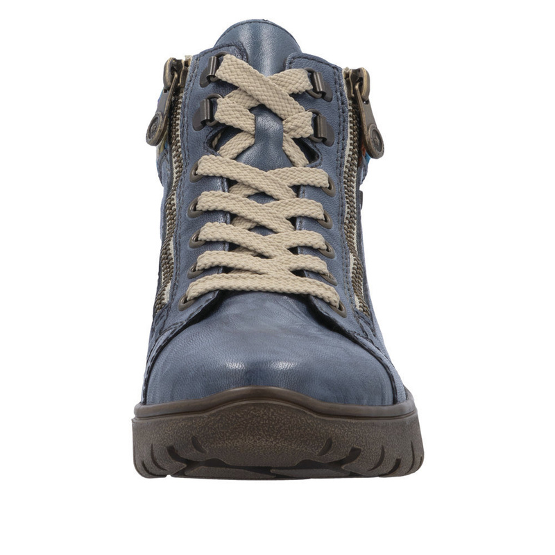 Bottine à lacet et double zip RIEKER – Largeur confort – Coloris Bleu