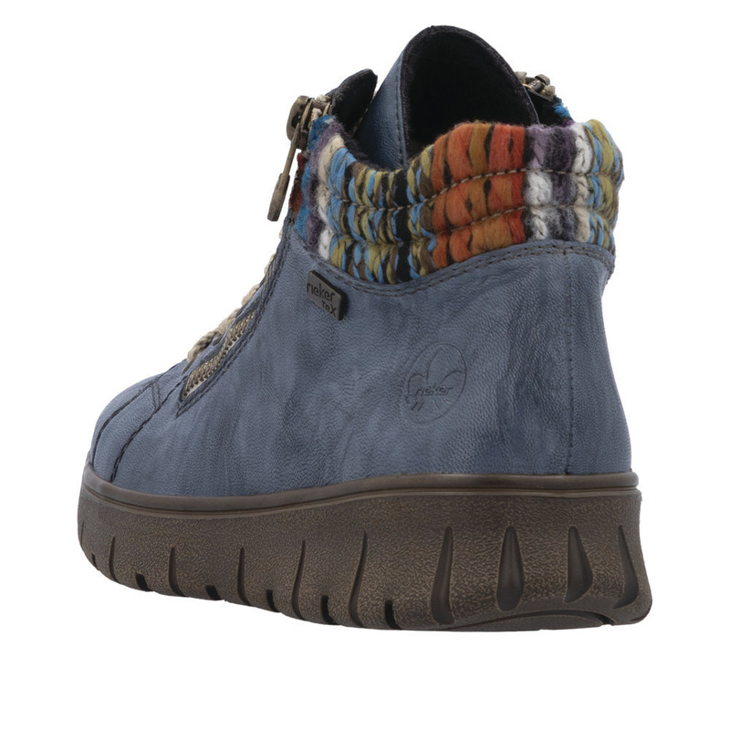 Cette bottine RIEKER en cuir souple coloris bleu allie style, chaleur et confort.