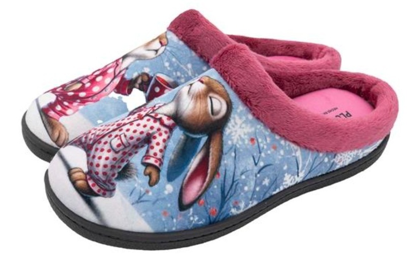 Jolie mule fantaisie avec un motif de lapin en pyjama offre un excellent confort grâce à son intérieur moelleux.