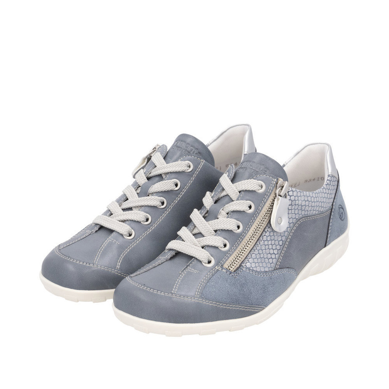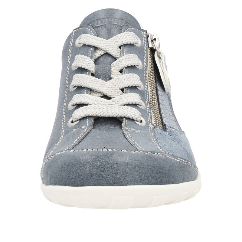 Confortable et tendance, cette basket montante en cuir bleu jean est idéale pour un usage quotidien. Conçue en largeur G, elle offre un chaussant confortable tout en conservant une silhouette moderne et décontractée.