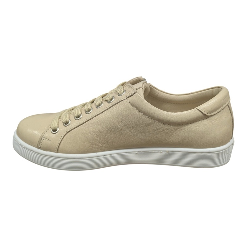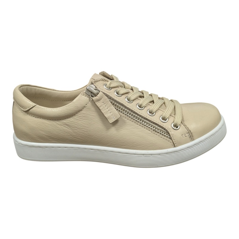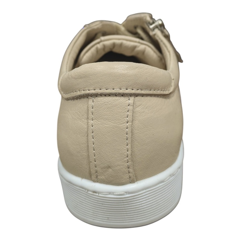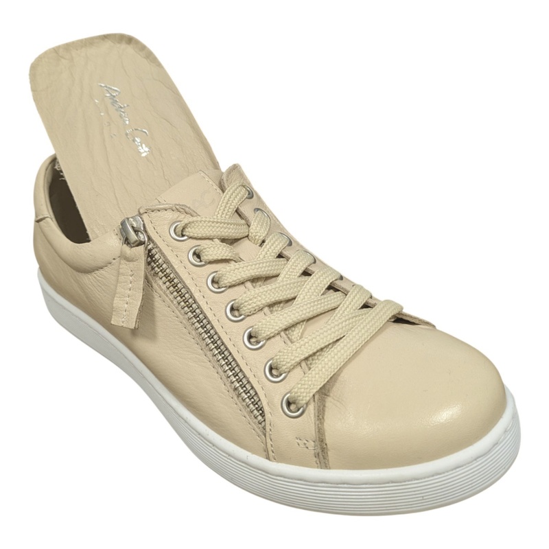 • Sneakers Andrea Conti en cuir beige à lacets et zip – grande largeur, semelle cuir amovible