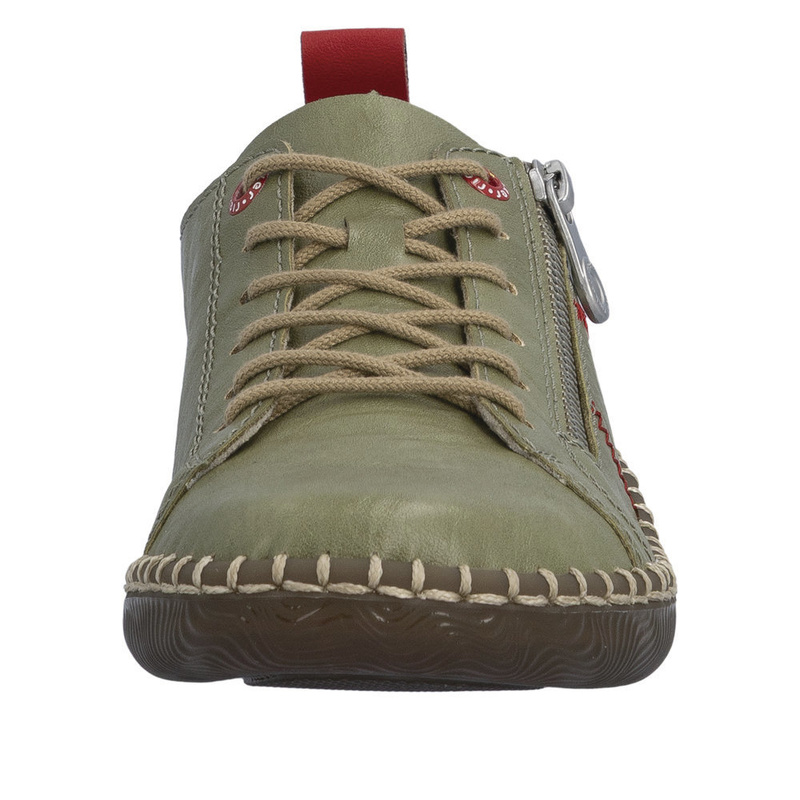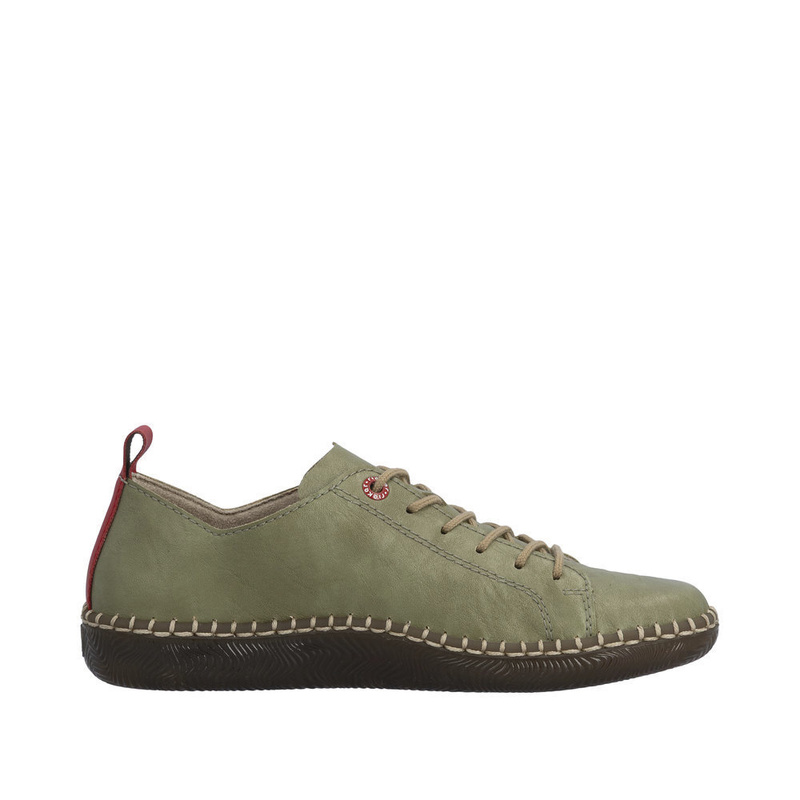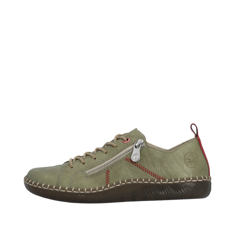 • Derby Rieker largeur H à lacets et zip – cuir kaki, semelle amovible cousue