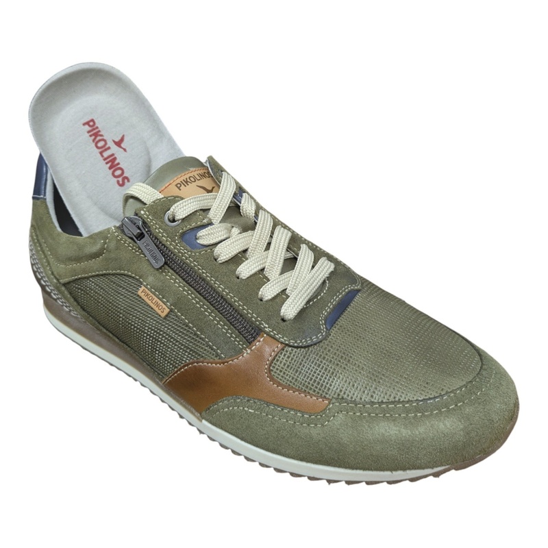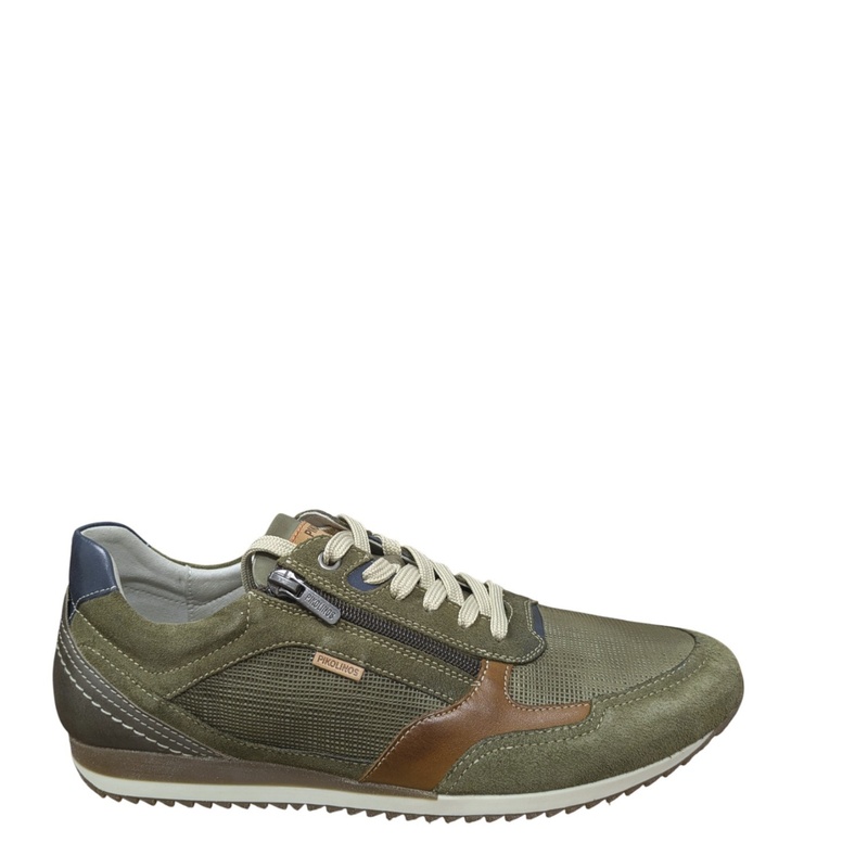 Ces sneakers Pikolinos en cuir kaki sont sublimées par des empiècements marron et marine, créant un contraste élégant et facile à assortir. Le système de fermeture lacets complété par un zip latéral assure un ajustement précis et un enfilage rapide.