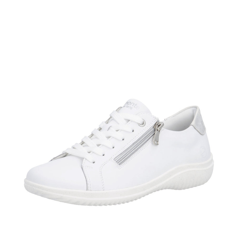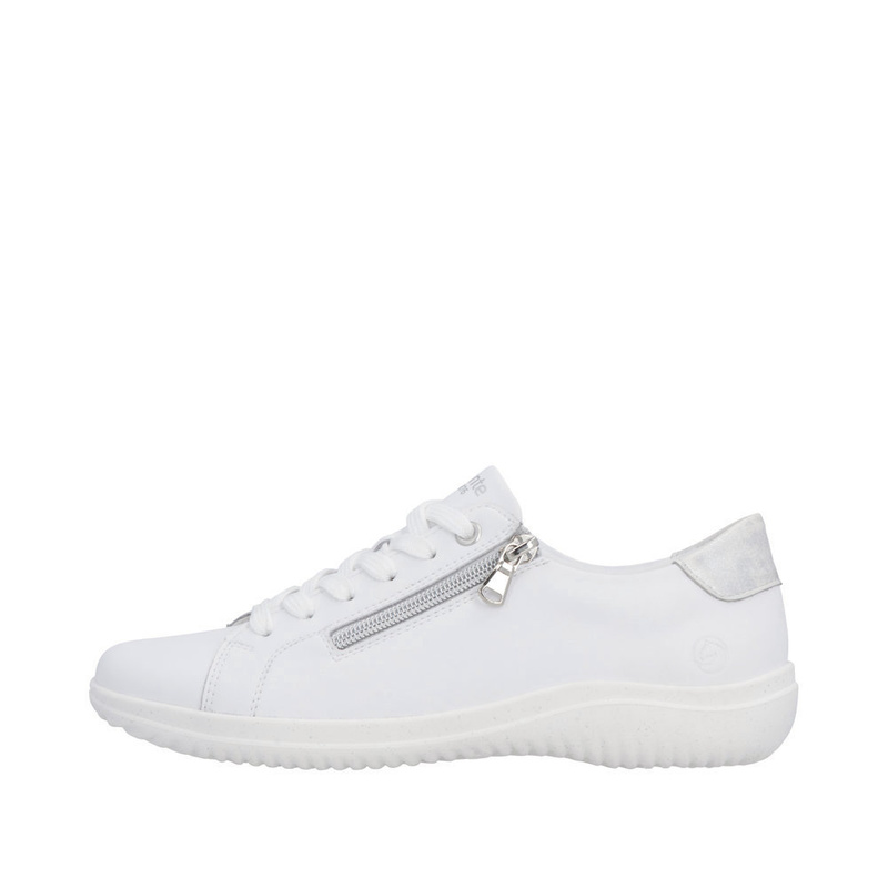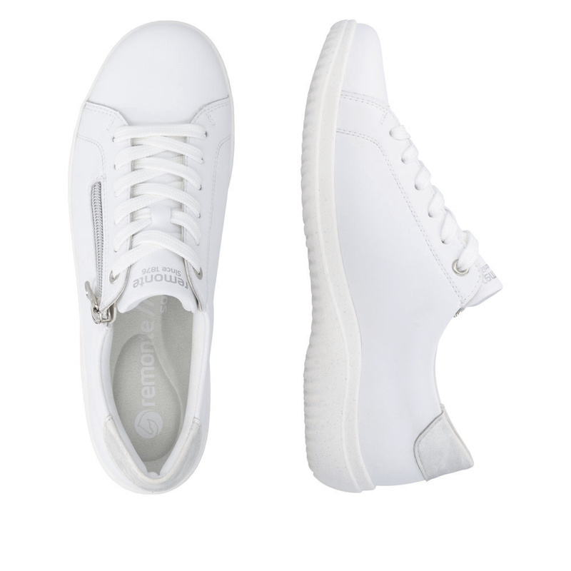 SNEAKERS LACET ZIP BLANC ET ARGENT LARGEUR G REMONTE D2E00