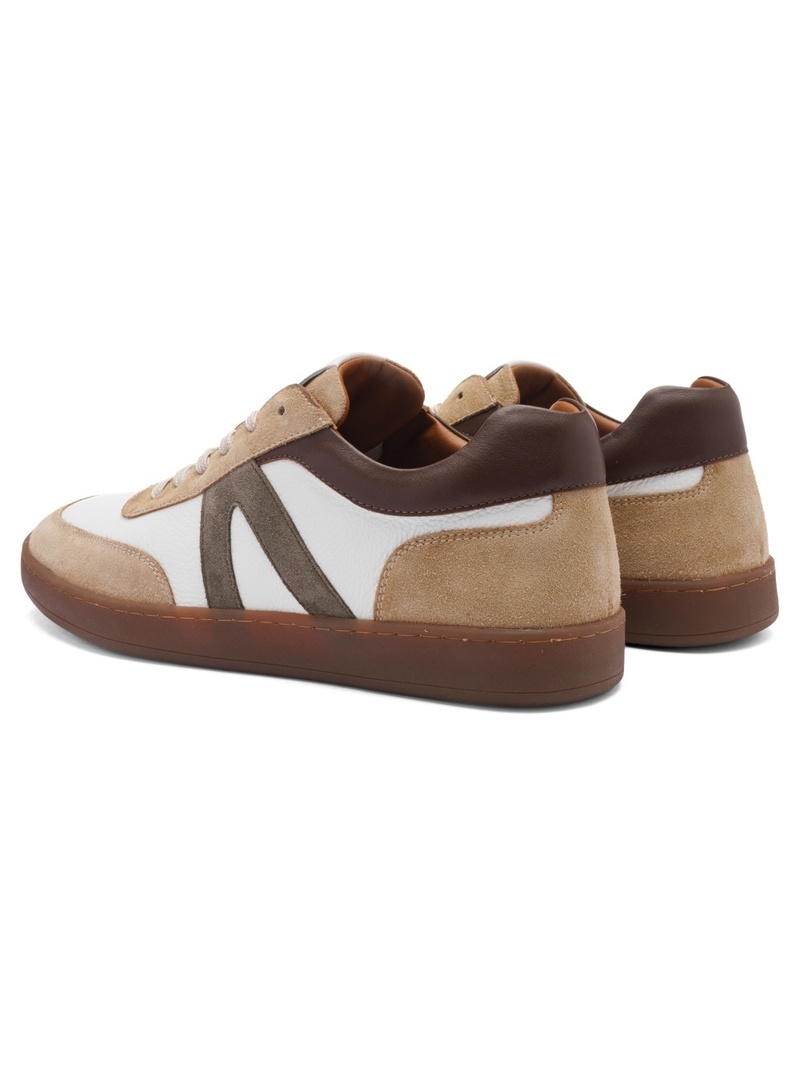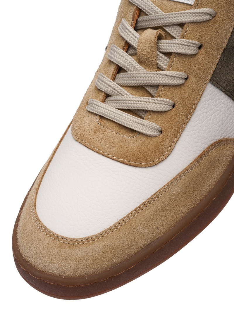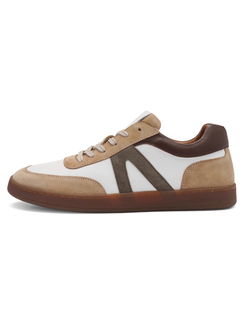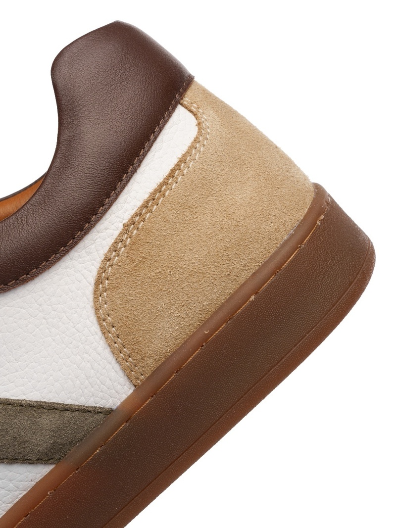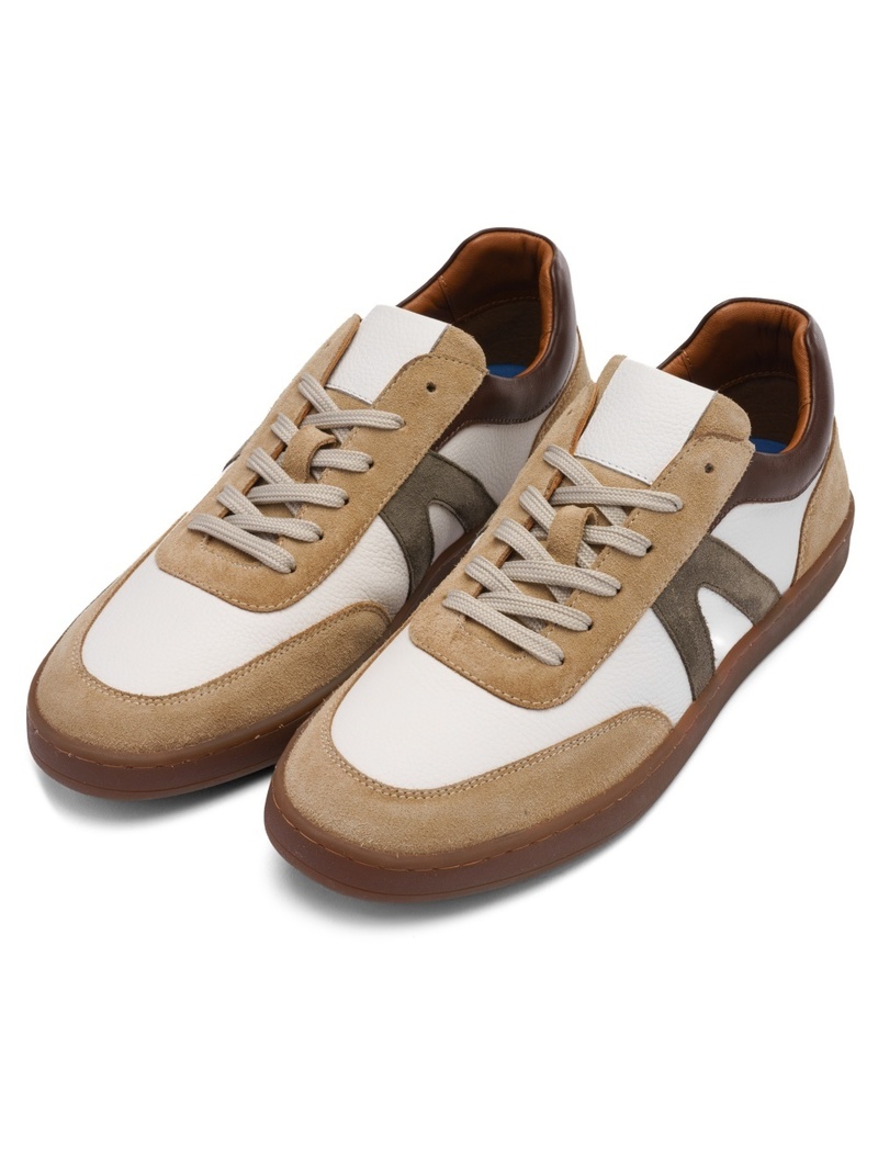 Modernes et confortables, ces sneakers en cuir largeur G séduisent par leur association élégante de blanc et beige, sublimée par un empiècement kaki sur les côtés. Un modèle facile à porter au quotidien.