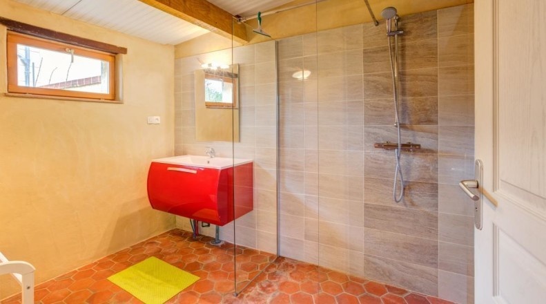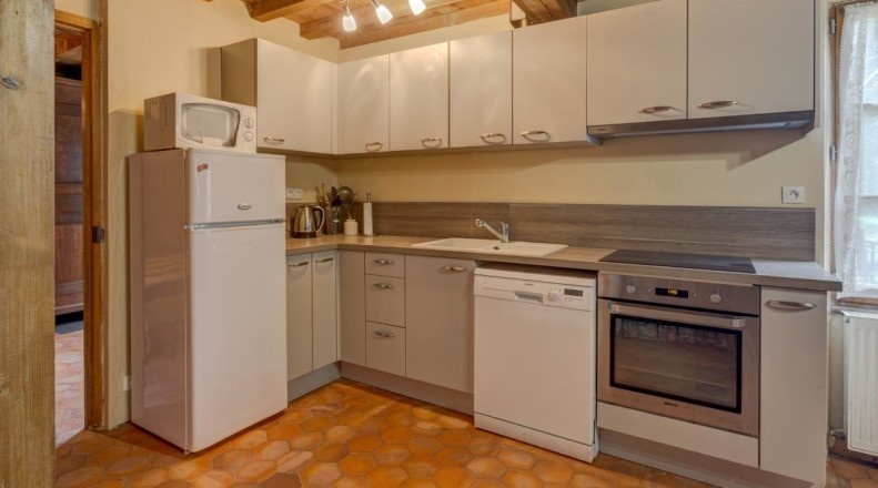 Au rez-de-chaussée vuos trouverez : Cuisine ouverte sur salon. Une chambre avec lit de 160x200 avec une salle d'eau attenante avec WC. Une extension du gîte offre un espace supplémentaire avec Une seconde salle d'eau et WC indépendant.