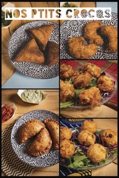 Le Caribéen Burger, pain burger maison bi-color, un ketchup de giraumon, une compotée de poivrons aux piments végétariens (non piquant), une galette d'aubergine frit, et un délicieux ...